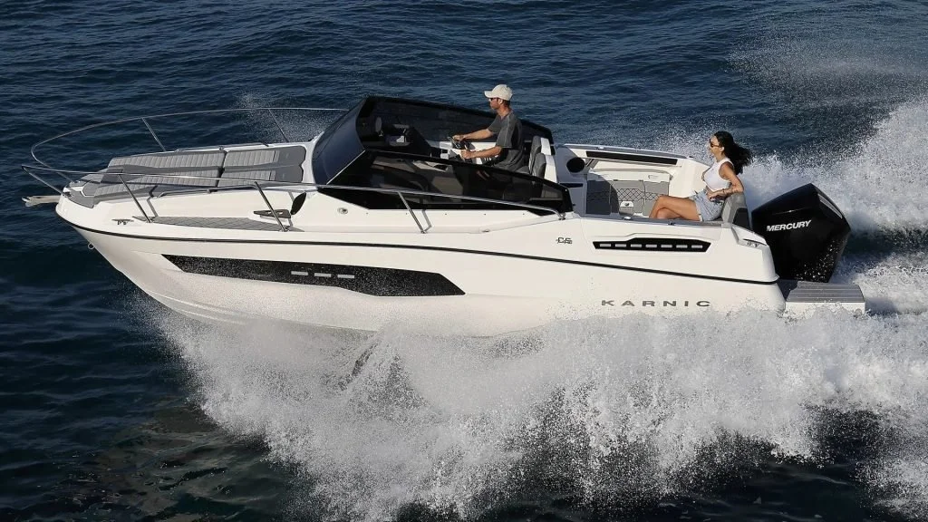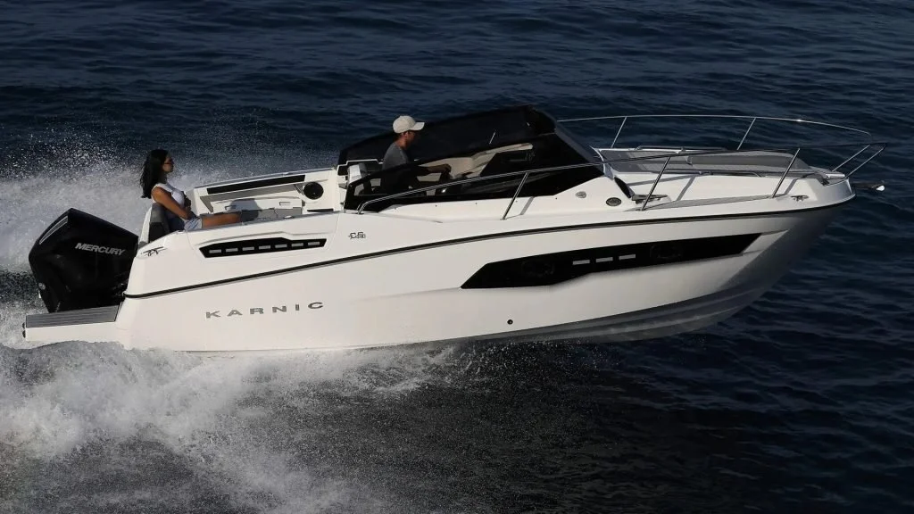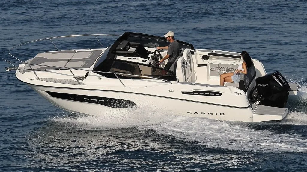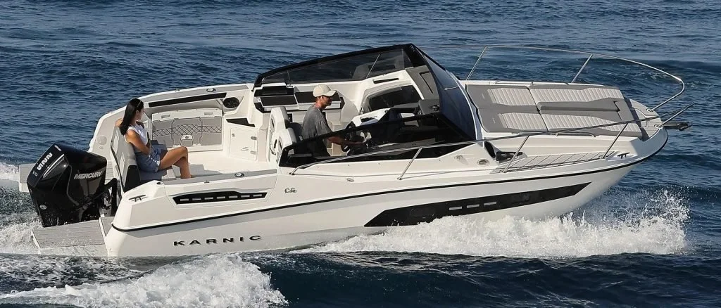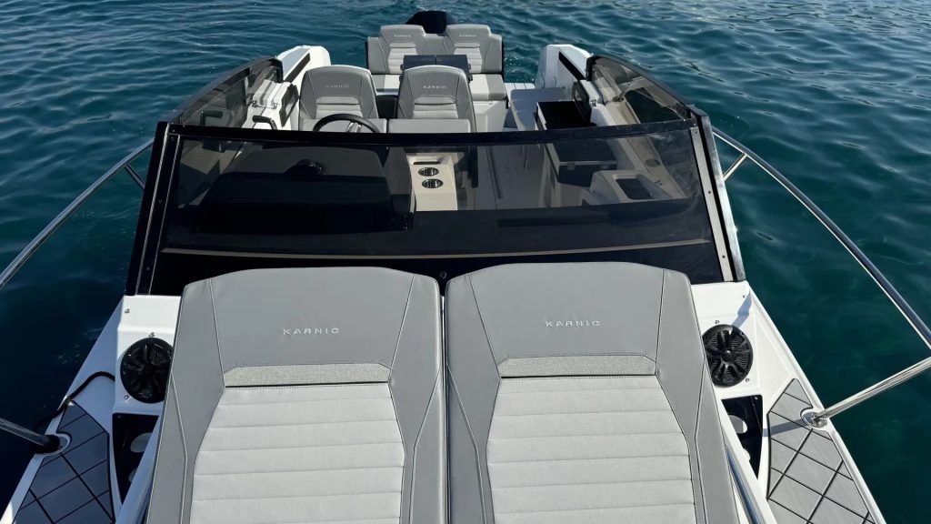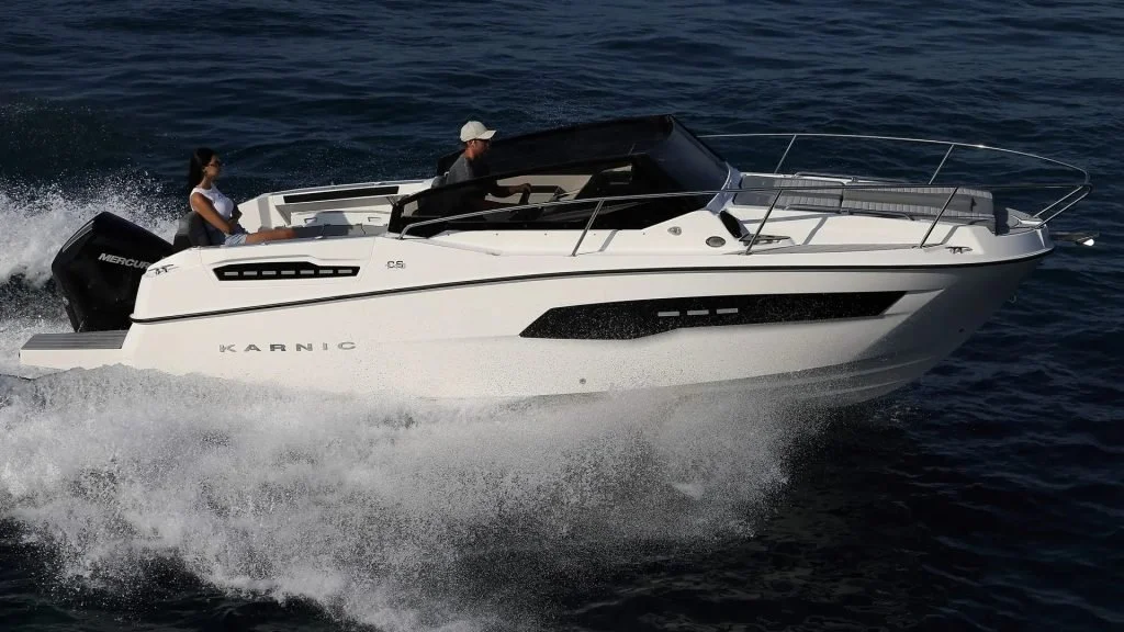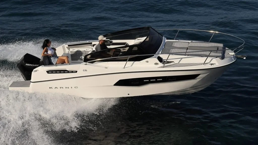 The Karnic CS740 is an elegant sports boat that combines superior design, performance and exceptional functionality. The overall length is 7.65 meters, which provides a spacious interior and comfort comparable to larger vessels. The boat is designed for anyone who wants to enjoy both fast sports driving and relaxed family outings.