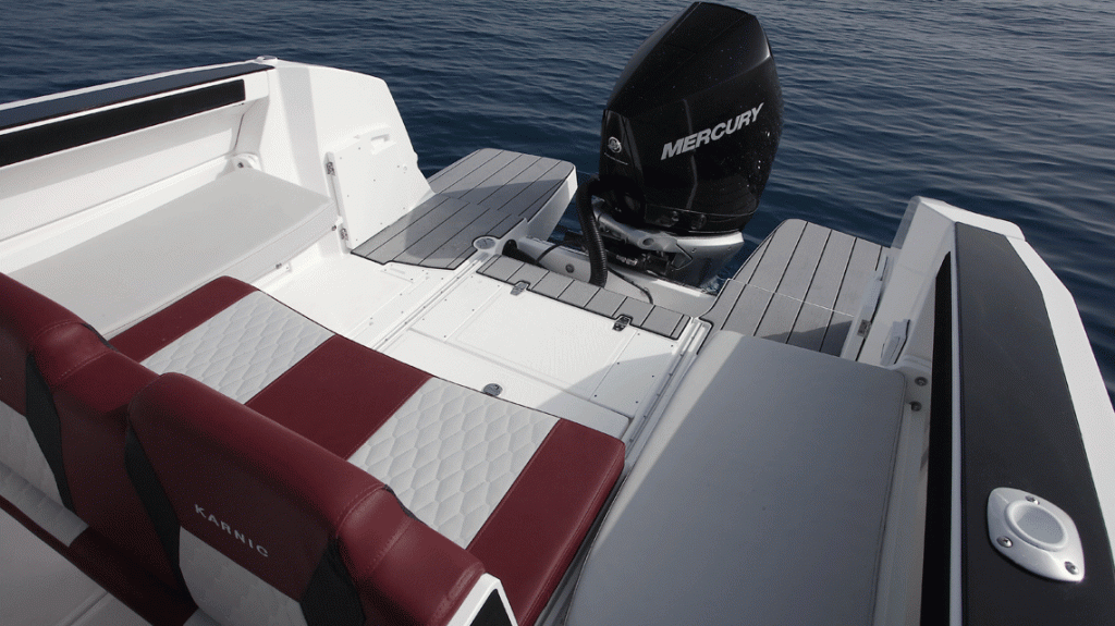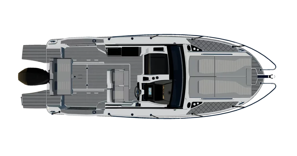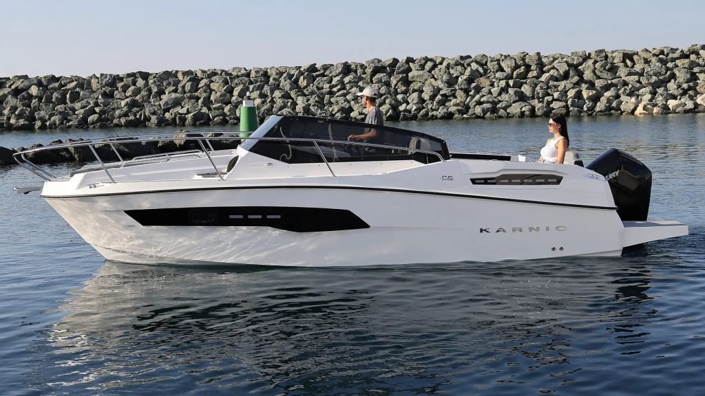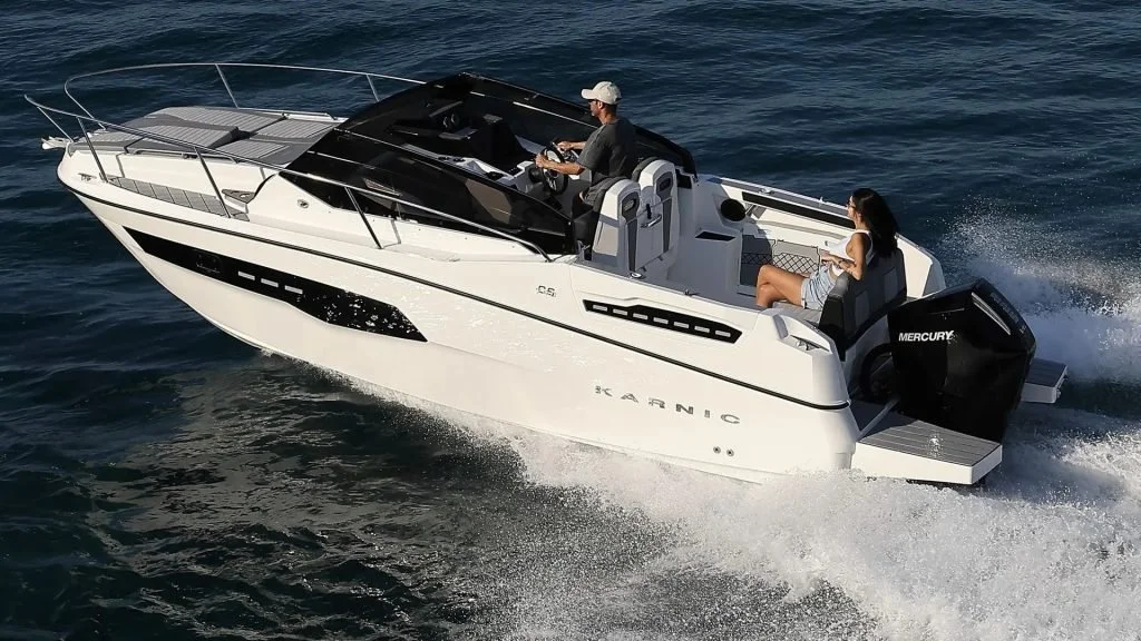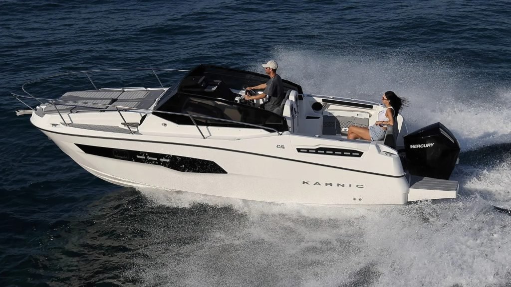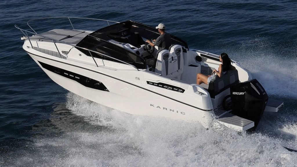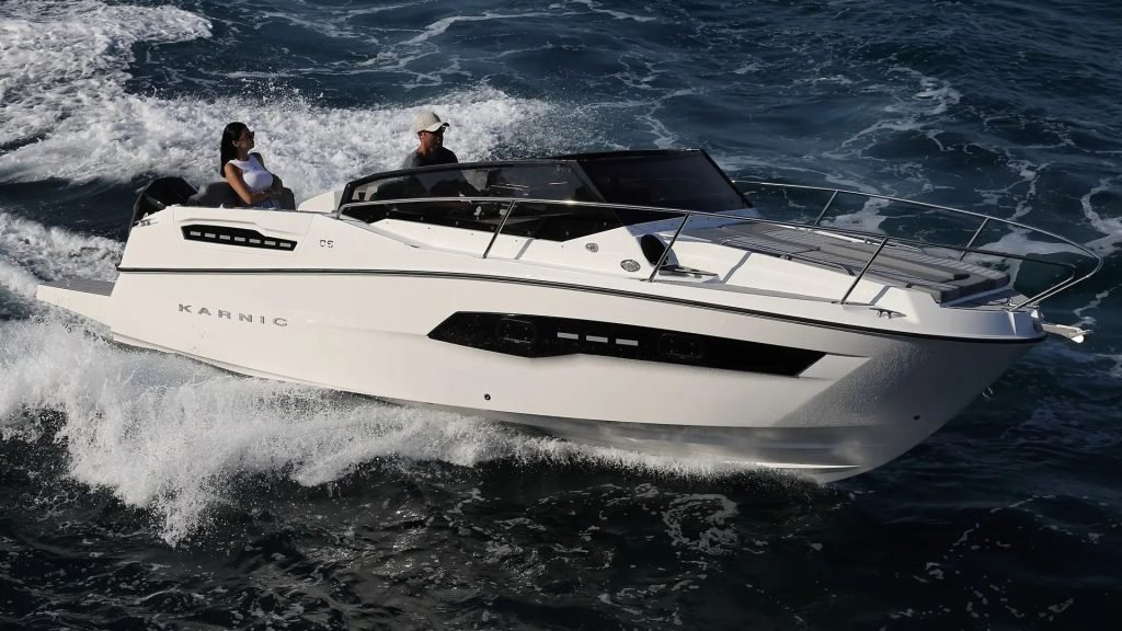 The Karnic CS740 is an elegant sports boat that combines superior design, performance and exceptional functionality. The overall length is 7.65 meters, which provides a spacious interior and comfort comparable to larger vessels. The boat is designed for anyone who wants to enjoy both fast sports driving and relaxed family outings.