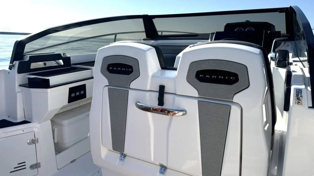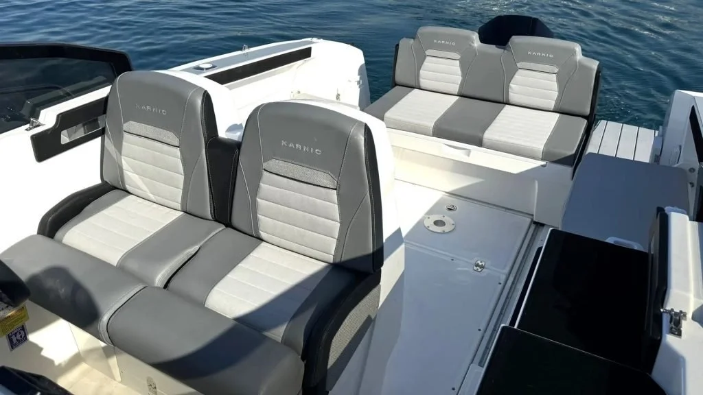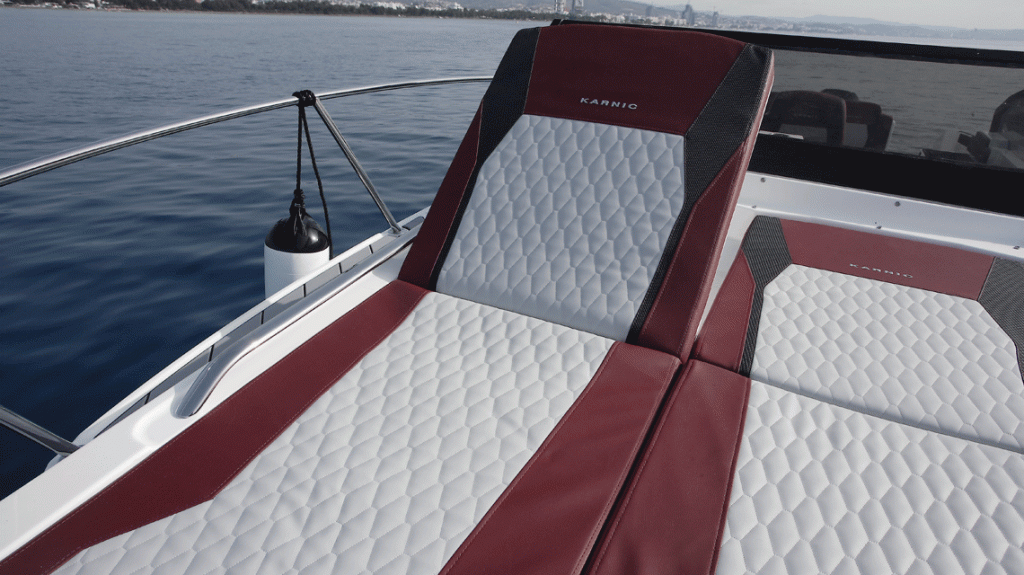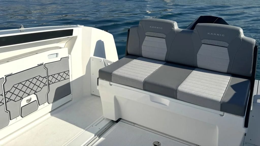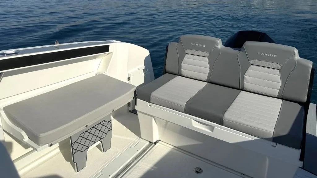The interior of the Karnic CS740 impresses with a spacious cabin, where we find comfortable seats, a berth and elegant details that ensure a pleasant stay on the water. The cockpit allows for various seat configurations that can be rearranged according to needs - whether for socializing, dining or sunbathing. There is also a great emphasis on practical solutions for storing equipment.