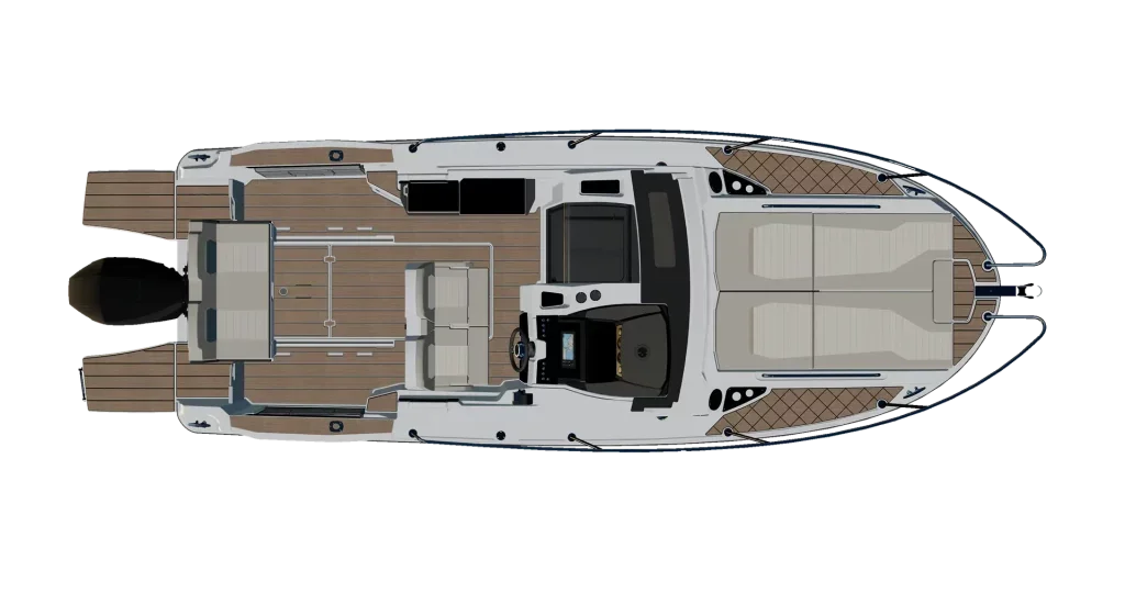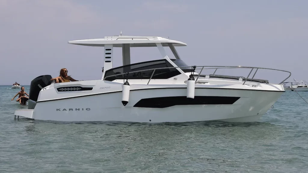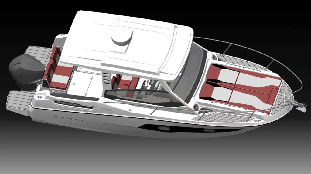 Karnic CS740-HT combines sporty performance, a T-top roof and a spacious design. With an overall length of 7.65 meters, it is an ideal boat for family outings and comfortable sailing in various weather conditions.