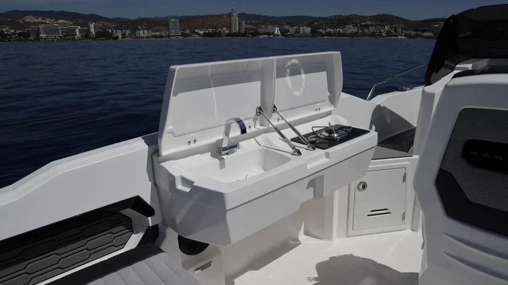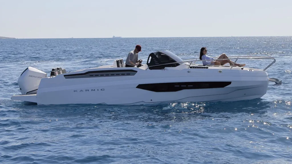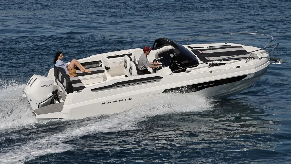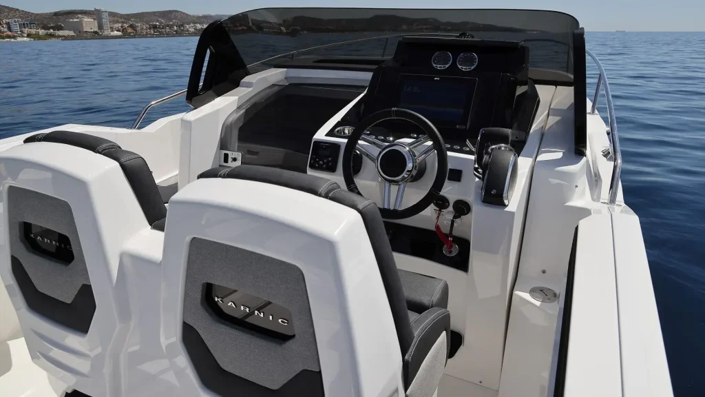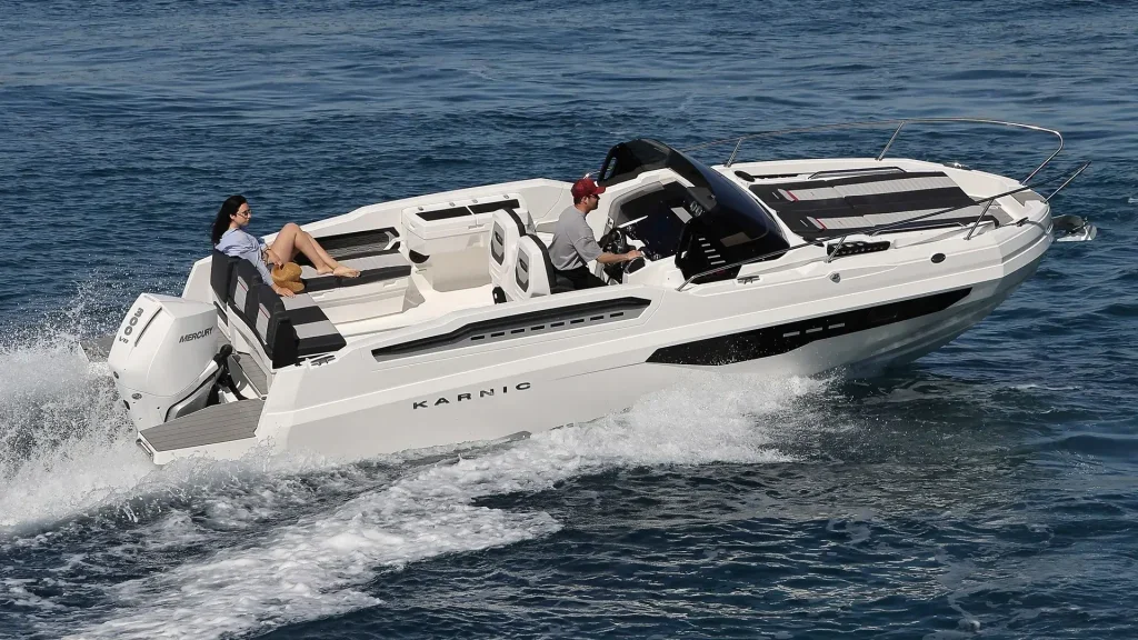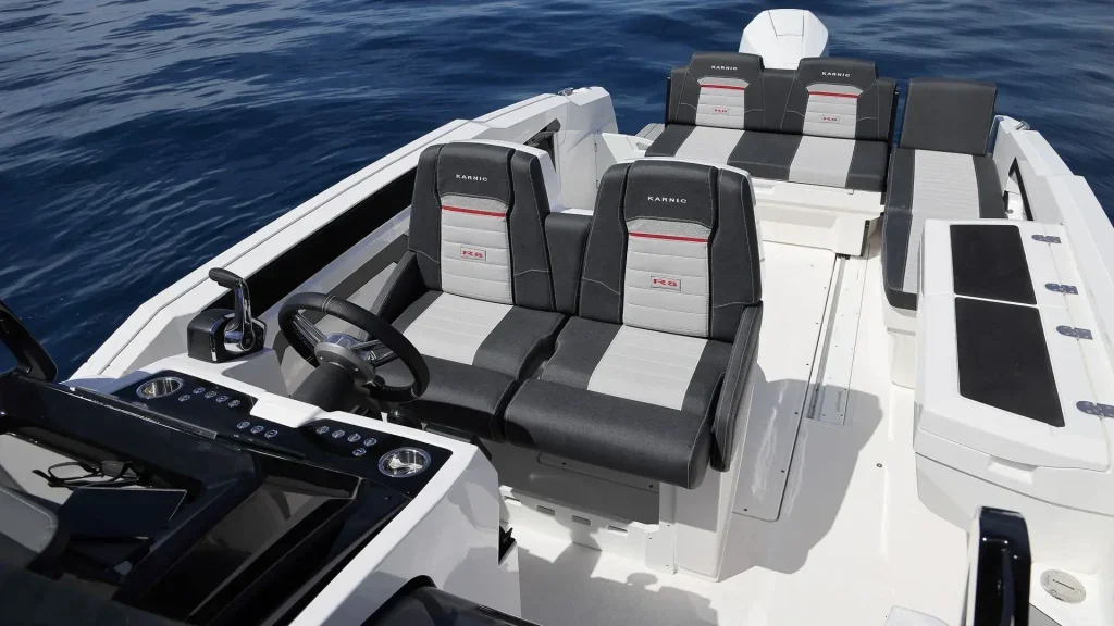 The Karnic R8 allows the installation of an engine of up to 300 hp, which ensures dynamic sailing, fast acceleration and carefree enjoyment on the water. Despite its high performance, the boat remains economical and suitable for everyday use, whether for sports driving or for family cruises.
