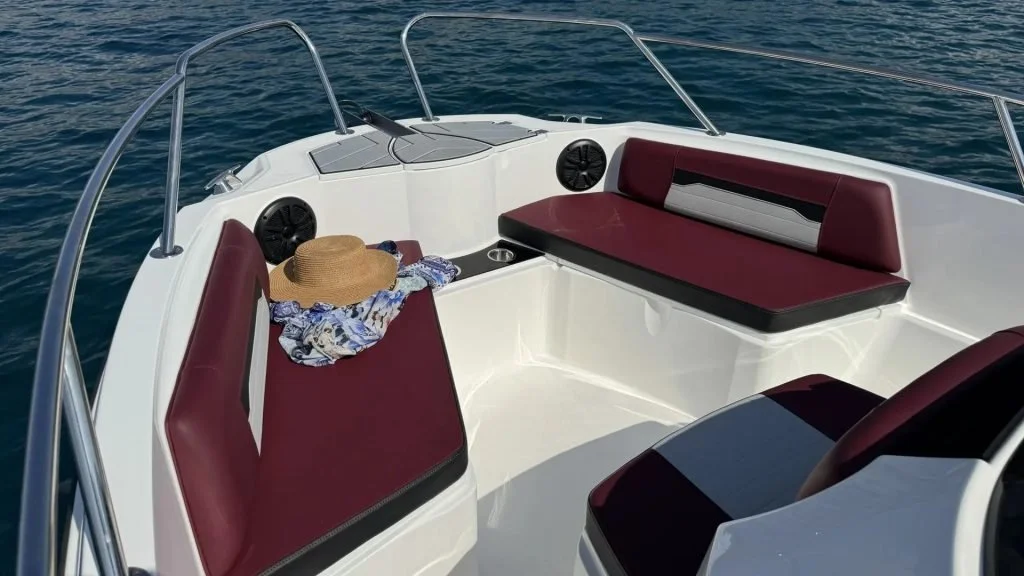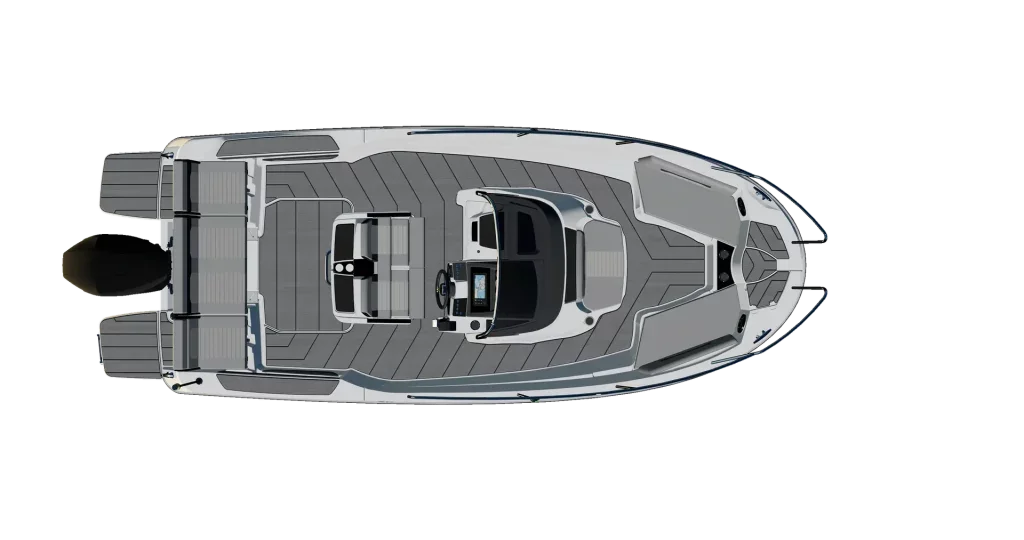 A special feature of the SL641 model is the flexible cockpit layout. The stern bench can be turned towards the direction of navigation or towards the rear of the boat, and the seating area by the table can be rearranged into an L or U shape, which allows for optimal use of space. The cockpit can also be easily transformed into a large sun deck or allows for easier transition to the swimming platform, which increases the versatility of the boat.