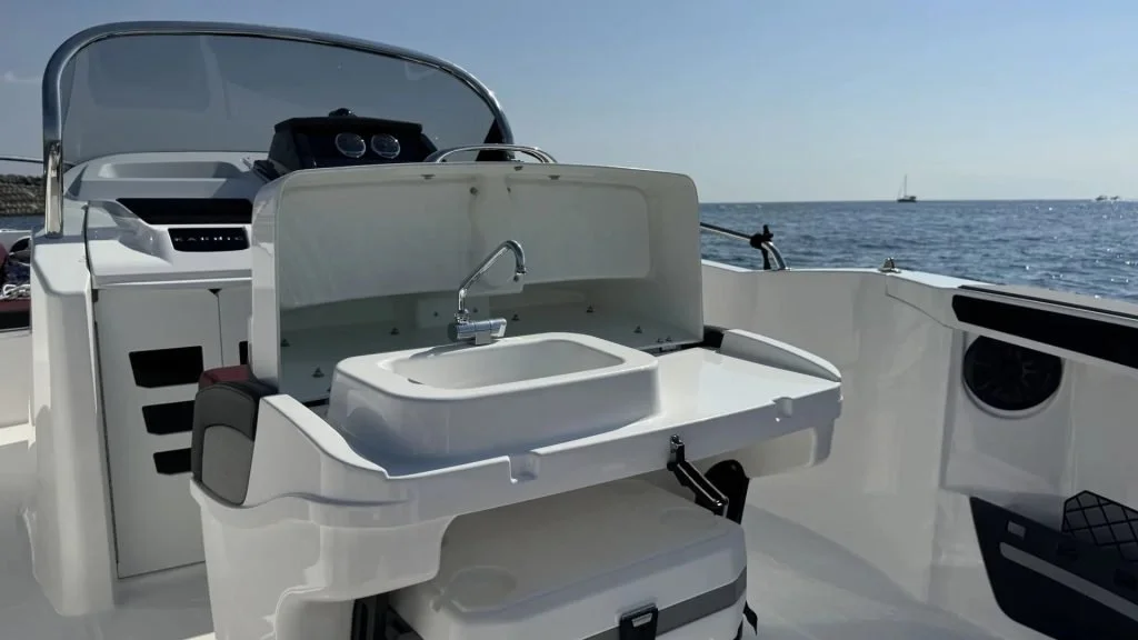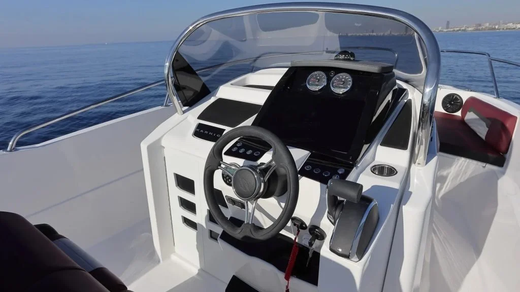 Karnic SL641 allows for the installation of an engine of up to 200 HP, which ensures sporty driving, fast planing and enjoyment of adrenaline-filled experiences on the water. Despite this, the boat maintains stability and economical fuel consumption, making it an excellent partner for family trips or fishing.