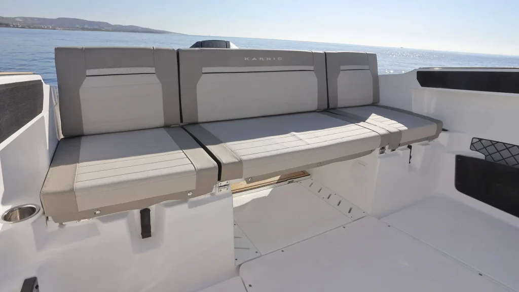 One of the biggest advantages of Karnic SL691 is its flexible cockpit design. The stern bench can be turned towards the direction of travel or towards the rear of the boat, the seating can be formed into an L or U configuration, and the cockpit can be converted into a spacious sun deck. Such flexibility allows for full use of space and comfort for all passengers.