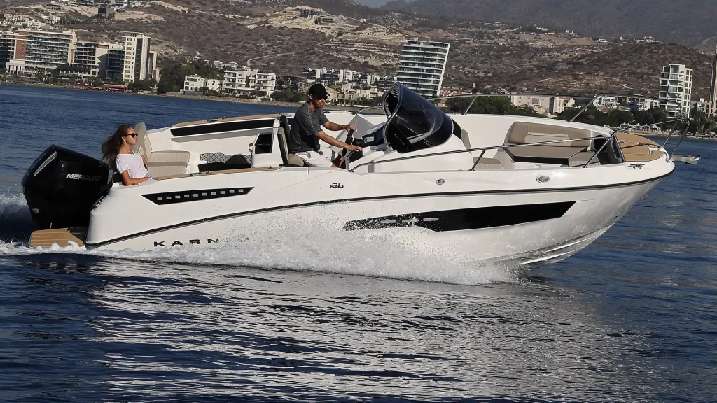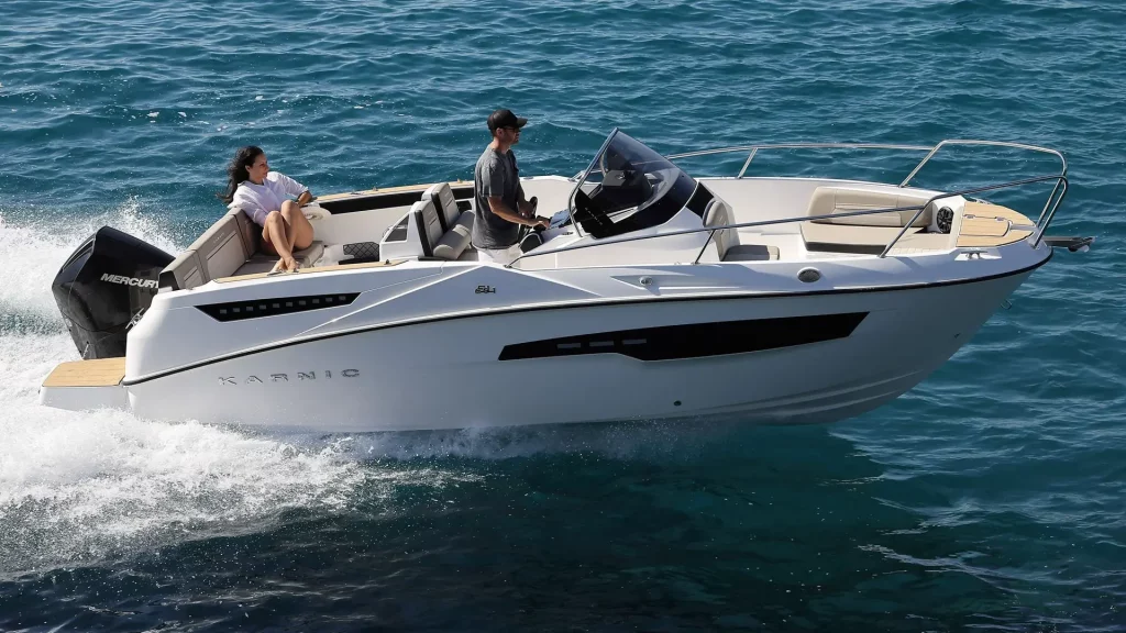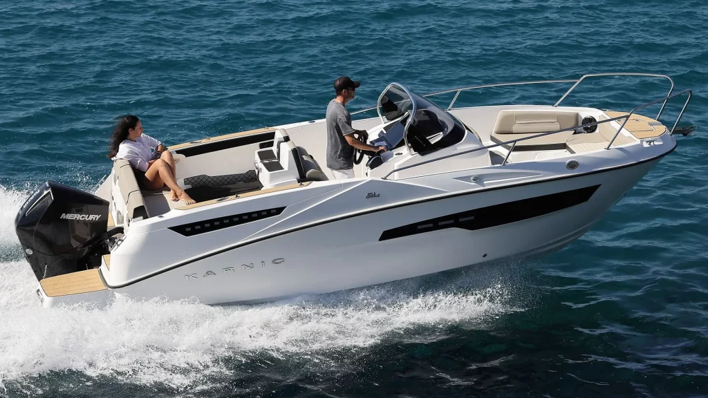 Karnic SL691 is a modern boat that, with its length of approximately 6.90 meters, offers the perfect balance between spaciousness, performance and comfort. This vessel is designed for anyone who wants to enjoy a sporty ride or a relaxed family outing, regardless of the sea conditions.