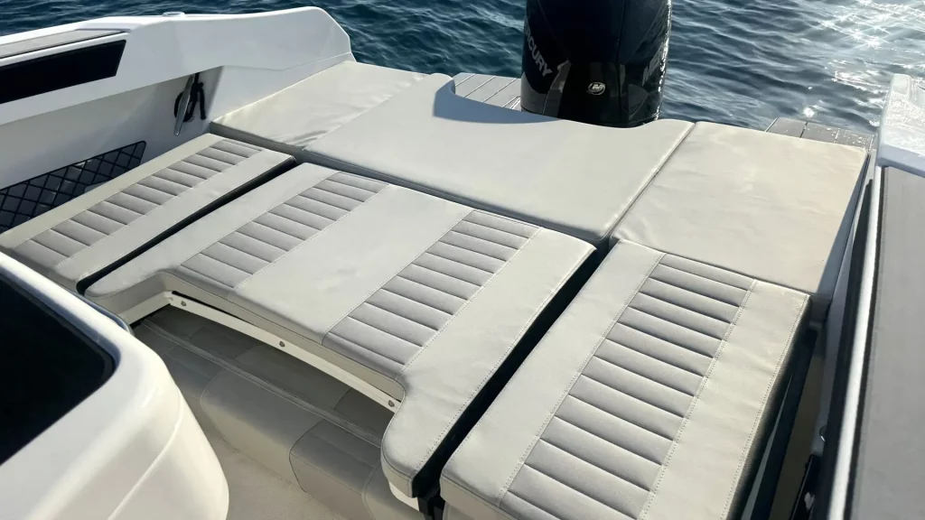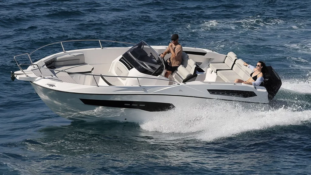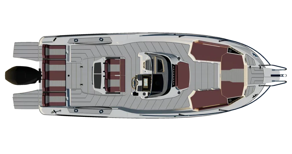 The SL741 model stands out with its flexible cockpit layout. The stern bench can be turned towards the direction of travel or towards the rear of the boat, the seating can be transformed into an L or U shape, and the cockpit can be converted into a spacious sun deck. Such a design allows for optimal use of space and comfort for everyone on board.