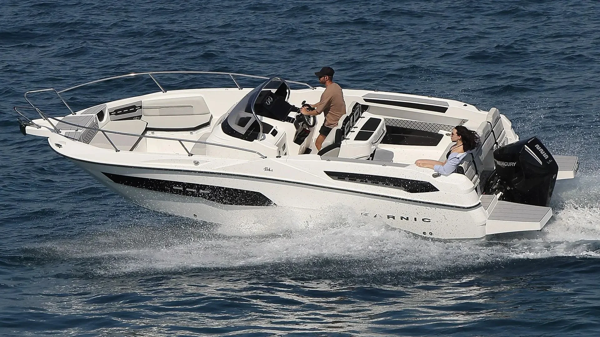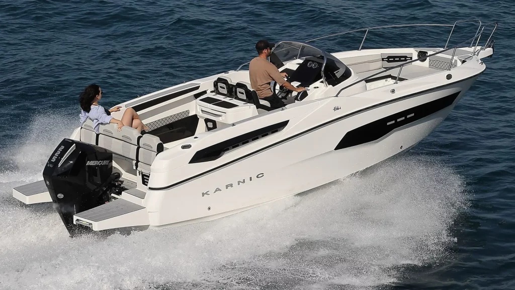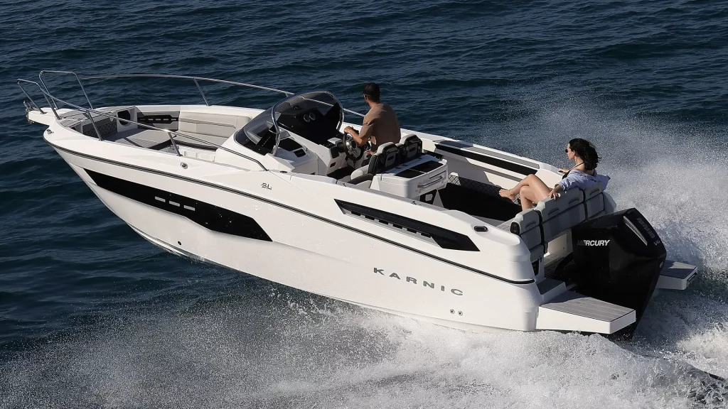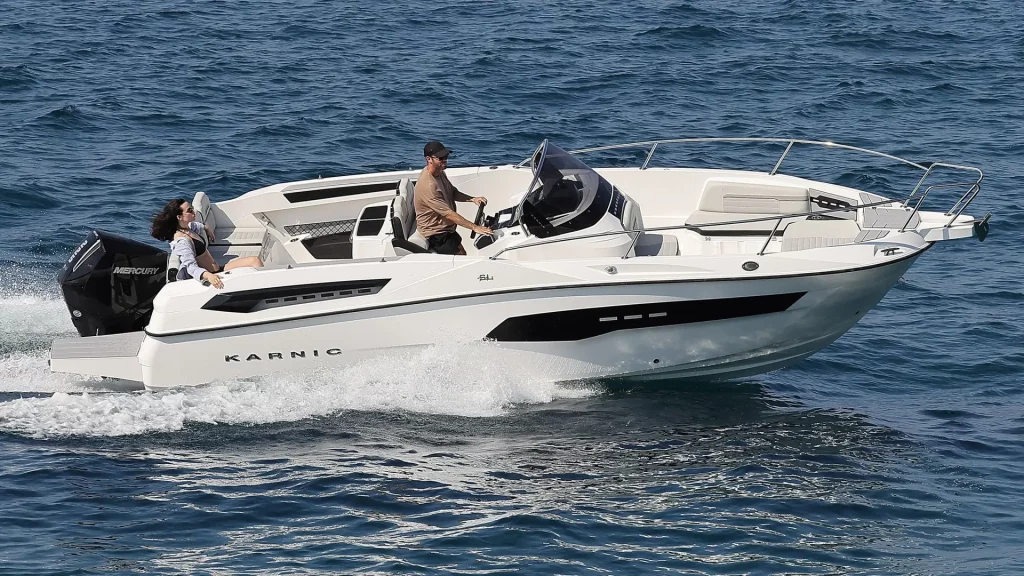 The Karnic SL741 is a superbly designed boat that, with its length of approximately 7.40 meters, offers spaciousness, stability and sporty performance. It is intended for anyone who wants uncompromising pleasure on the water, whether for family adventures or for faster sports rides.
