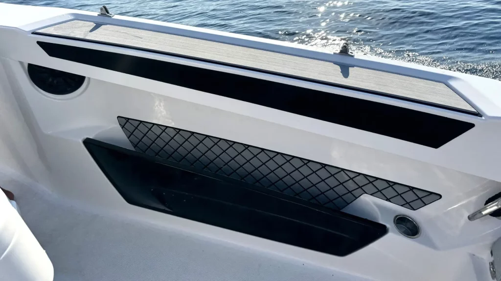 STORAGE COMPARTMENTS WITH DRAIN IN BOW UNDER SEATS