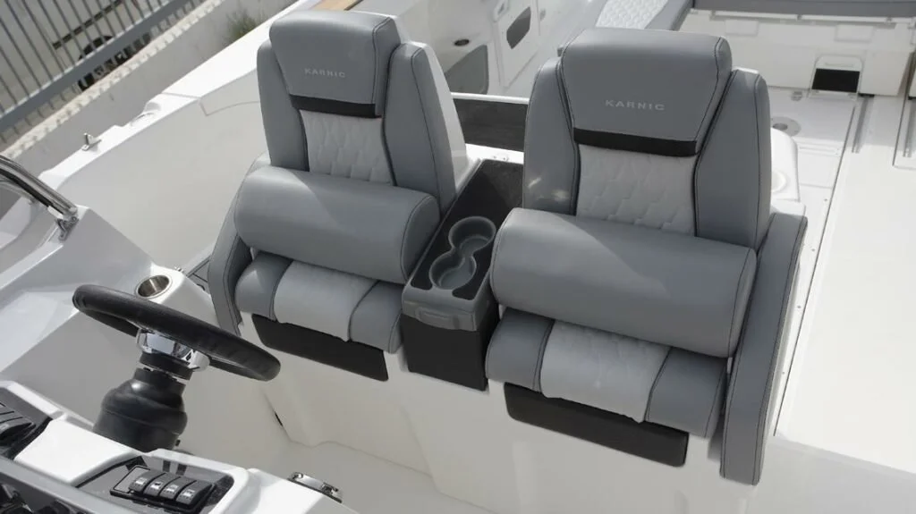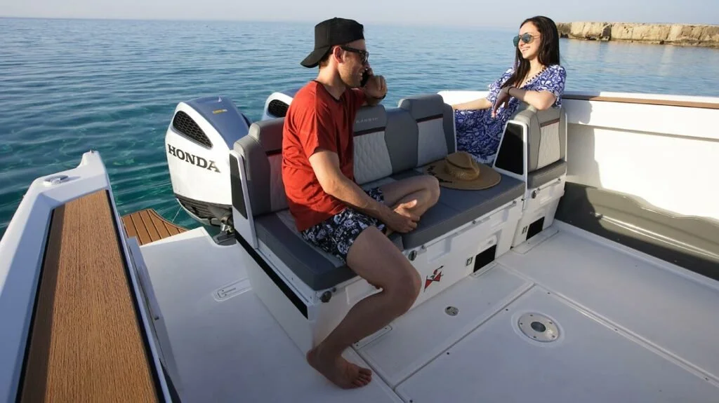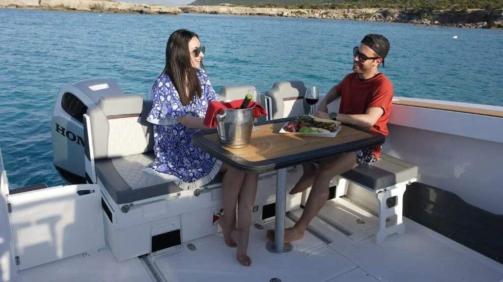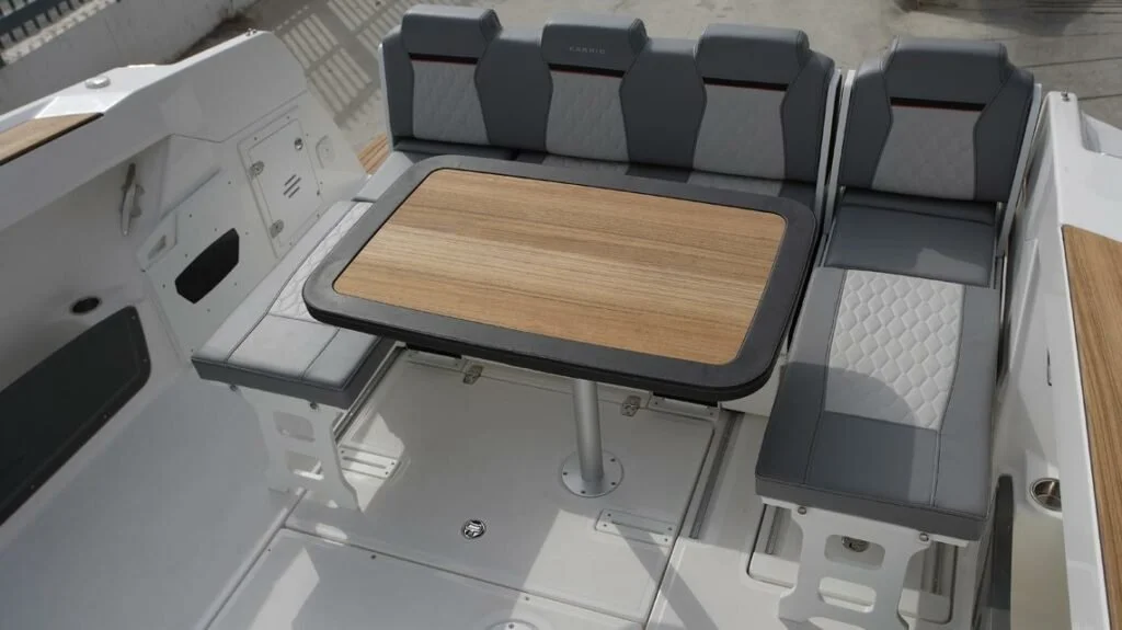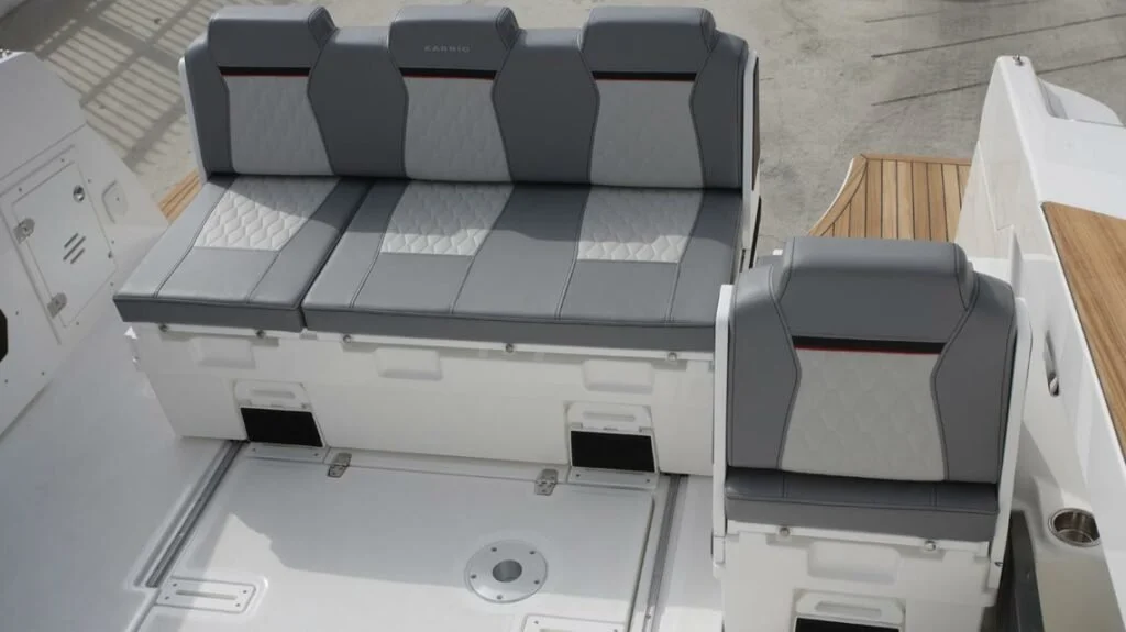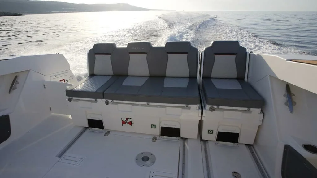 The interior of the Karnic SL902 offers a spacious cabin with a comfortable berth, the possibility of a kitchen area and numerous storage solutions. The cockpit is designed for maximum flexibility, the seating can be rearranged into various configurations - from comfortable socializing at the table to a large sun platform for relaxation. This flexibility allows for optimal use of the boat for both family trips and sports adventures.
