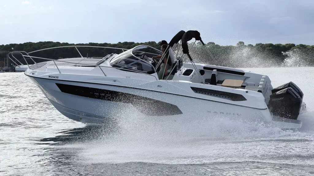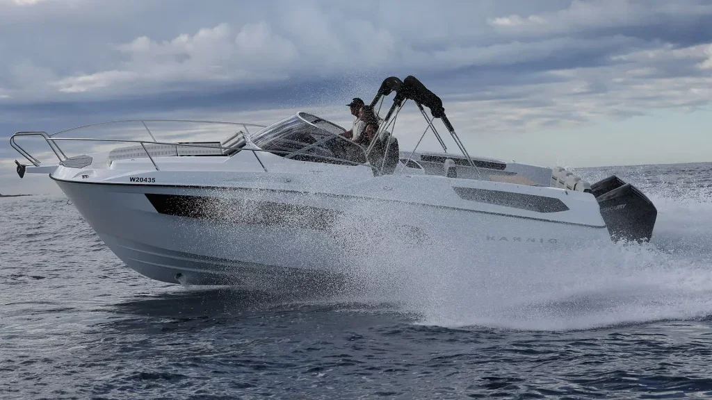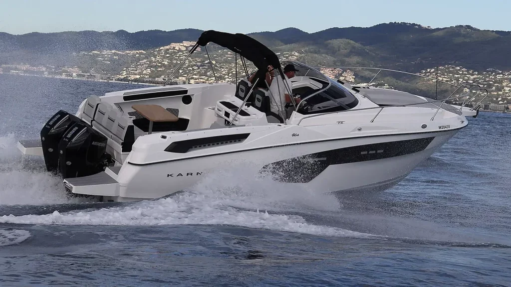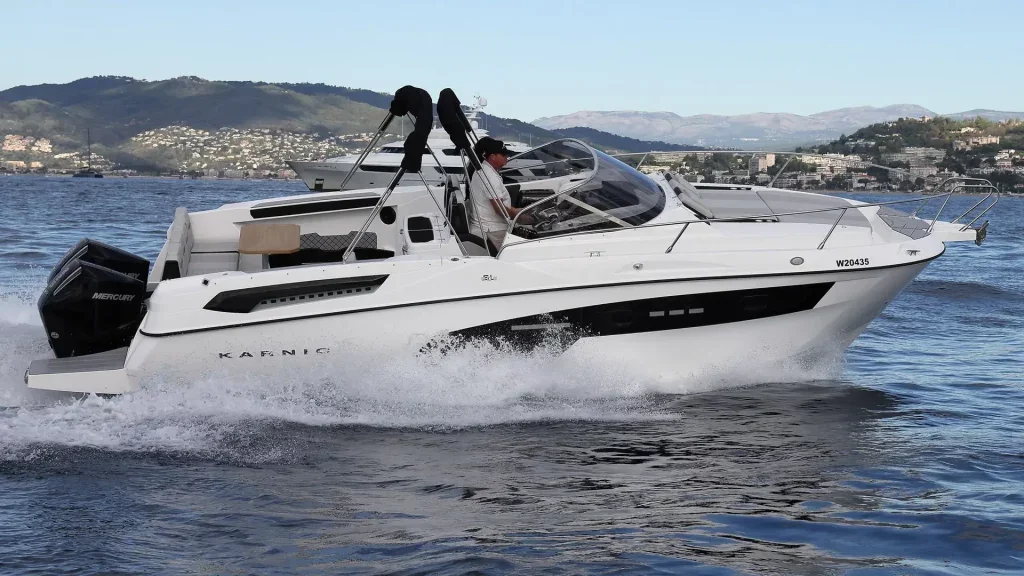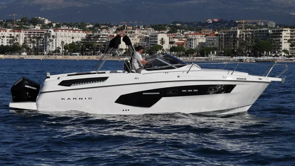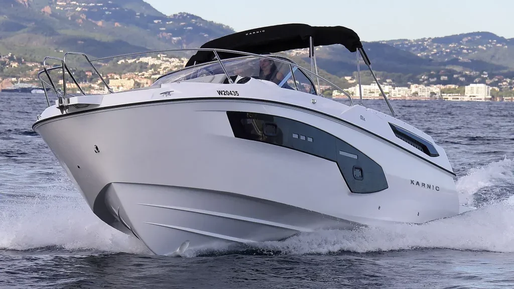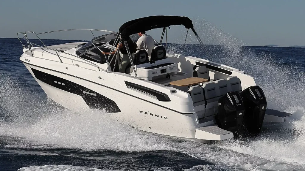 Karnic SL902 is a top-of-the-line sports boat that combines elegant design, advanced technical solutions and exceptional spaciousness. The overall length is 9.20 meters, which provides a sense of luxury and comfort comparable to larger yachts. It is a model that impresses with both its sports performance and its comfort for longer cruises.